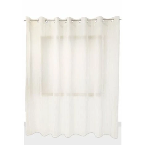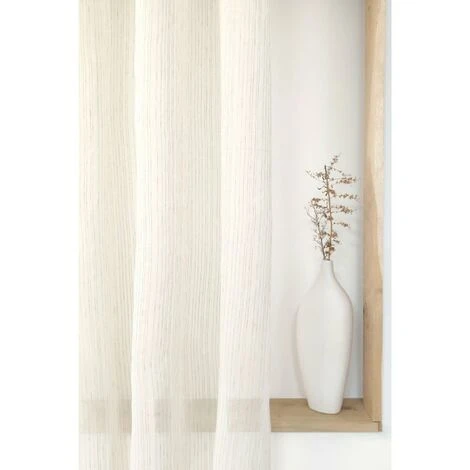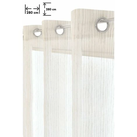 Voilage 280 x 280 cm à quatorze oeillets grande largeur grande hauteur effet naturel fines rayures verticales ramie naturel. Un voilage XL au design sobre et doux pour un habillage fenêtres délicat.