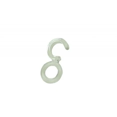 Description : 20 Agrafes en plastique transparent pour nos anneaux de tringle Ø20. Agrafe à coudre sur le ruban fronceur du rideau ou se clipse sur l’agrafe escargot pour relier l’anneau à la ruflette.