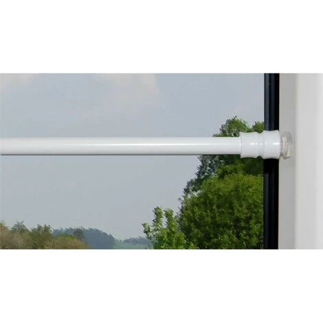 1 Tringle extensible et autobloquante Ø8 mm en métal laqué blanc pour fenêtres PVC, bois ou aluminium. S’adapte en quelques secondes sans percer sur tous les cadres de fenêtres à angle droit. Les embouts d’extrémités assurent l’accroche et la protection de la menuiserie grâce à son système de ventouses.