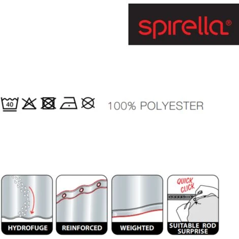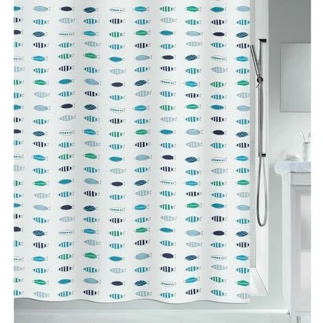 Rideau de douche de la marque Spirella. Anti-moisissure, ce rideau de douche Textile Polyester est enduit d’un revêtement antibactérien pour prévenir les taches et la formation de moisissures. Donnez du style à votre salle de bain: Spirella associe hygiène et esthétique avec des designs exclusifs inspirés des dernières tendances. Finition de qualité supérieur, bordure supérieur et inférieur renforcés pour une bonne tenue. Etanche grâce un revêtemet hydrofuge, le rideau permet d’éviter d’éventuelles éclaboussures en dehors de la douche ou de la baignoire: l’humidité ne s’accumule plus dans les plis et offre une longue durée de vie. Il suffit de l’accrocher et le plaisir de la douche peut commencer! Particulièrement durable et facile à nettoyer, lavable à 30°. Anneaux non inclus. Dimensions: 120x200cm Couleur: Bleu & Blanc Matière: Polyester