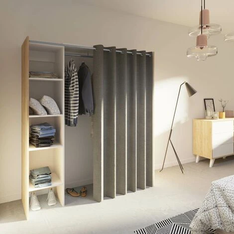 Fonctionnel et discret, grâce à un module de penderie et de 4 étagères réglables (possibilité d’assembler la colonne de 40 cm, à droite ou à gauche), le dressing TOM se fixe au mur et s’adapte à vos besoins et envies au fil du temps.