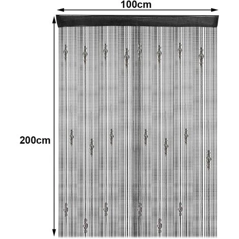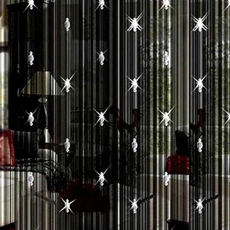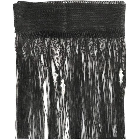 Black Mystery: rideaux avec rubans et perles argentés brillants. La visibilité du rideau à fils est considérablement améliorée.