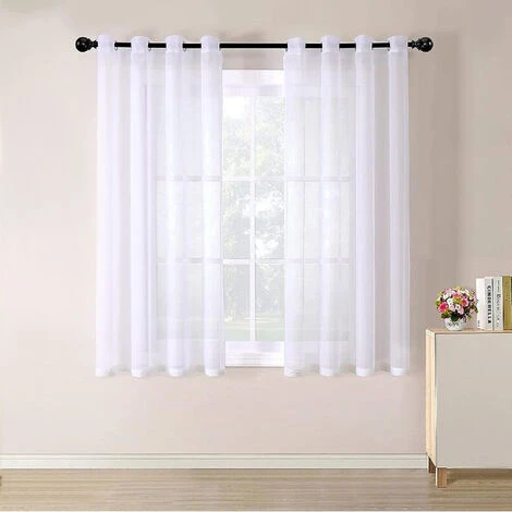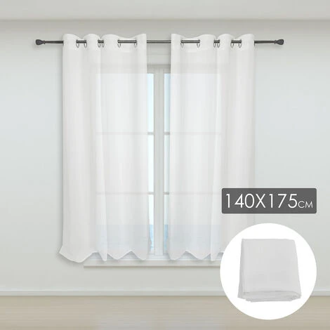 Le paquet contient 2 pièces de rideaux en voile, hauteur 175cm largeur 140cm, 100% polyester, couleur blanche, Magnifiques rideaux avec œillets métalliques pour les accrocher à une tringle à rideaux.