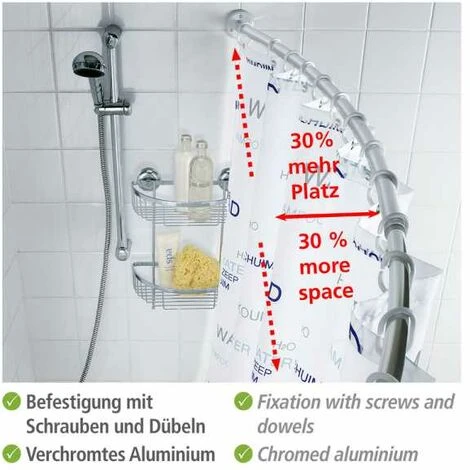 Le plaisir de la douche à l’état pur – la forme arquée de la barre de douche crée jusqu’à 30% de plus d’espace et de liberté sous la douche et empêche la désagréable sensation du rideau de douche qui colle au corps. Extensible, la barre de douche de couleur chromée est extra épaisse, avec un diamètre de 2,5 cm, et elle offre une portée de 110 à 200 cm. Elle est également adaptée comme barre pour rideau au dessus de la baignoire. La garantie du fabricant est de 5 ans. Pour ce produit, vous bénéficiez d‘une garantie de 5 ans à compter de la date d‘achat. La garantie porte sur tous les vices de matériau et de fabrication qui altèrent le bon fonctionnement. Sont exclus les dommages résultant d‘une utilisation incorrecte ou de l‘usure naturelle. La garantie ne restreint aucun de vos droits à la garantie légaux. En cas de garantie, veuillez renvoyer gratuitement l‘article accompagné du ticket de caisse et convenablement emballé pour le transport à l‘adresse suivante : Wenko-Wenselaar GmbH & Co. KG · Abteilung « Retouren » Im Hülsenfeld 10 · 40721 Hilden, Allemagne [email protected]