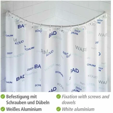 Cette pratique barre de douche ronde participe au bien-être de la douche. D’une longueur maximale de 90 x 90 cm, la barre s’adapte à chaque douche d’angle de dimensions courantes. Le rideau de douche peut être posé et ouvert facilement et il empêche ainsi les éclaboussures de l’eau de douche. Le sol reste sec. La barre de douche très résistante est fabriquée en aluminium finition blanche haut de gamme et elle garantit à la fois stabilité et rigidité grâce à son diamètre de 25 mm. Le montage mural est simple comme un jeu d’enfants. Le matériel de fixation est fourni. La garantie fabricant pour la barre de couleur banche est de 5 ans. Pour ce produit, vous bénéficiez d‘une garantie de 5 ans à compter de la date d‘achat. La garantie porte sur tous les vices de matériau et de fabrication qui altèrent le bon fonctionnement. Sont exclus les dommages résultant d‘une utilisation incorrecte ou de l‘usure naturelle. La garantie ne restreint aucun de vos droits à la garantie légaux. En cas de garantie, veuillez renvoyer gratuitement l‘article accompagné du ticket de caisse et convenablement emballé pour le transport à l‘adresse suivante : Wenko-Wenselaar GmbH & Co. KG · Abteilung « Retouren » Im Hülsenfeld 10 · 40721 Hilden, Allemagne [email protected]