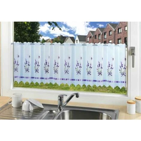 - Film pare-vue décoratif avec un beau design de rideau de bistro et un motif de lavande photoréaliste.