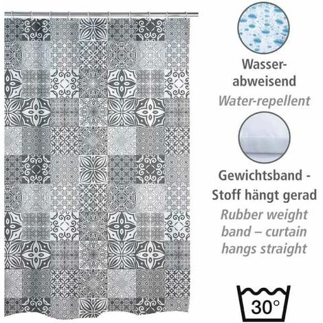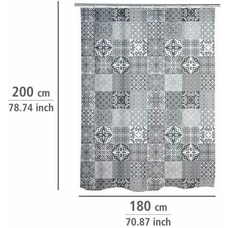 Le rideau de douche Portugal au design traditionnel à carreaux en céramique portugais offre un changement réussi dans le quotidien monotone en salle de bain. D’une largeur de 180 cm et une hauteur de 200 cm, l’ingénieux rideau de douche est adapté aussi bien pour les douches que pour les baignoires. Le rideau de douche aux finitions haut de gamme est fabriqué en polyester particulièrement robuste. La matière est hydrofuge grâce à l’ennoblissement de sa surface. Il est facile à entretenir et lavable à 30 °C. L’ourlet supérieur est doté d’un rebord à trous renforcé et d’oeillets métalliques inox. Un ruban alourdisseur en caoutchouc écologique (au lieu du plomb) à l’extrémité du bas donne au rideau sa forme. La livraison comprend 12 anneaux pour rideau de douche en matière plastique blanche. Le rideau hors du commun se combinera particulièrement bien avec l’abattant WC assortis. Tous les ustensiles de salle de bain ont un effet noble et promettent des heures relaxantes dans la salle de bain.