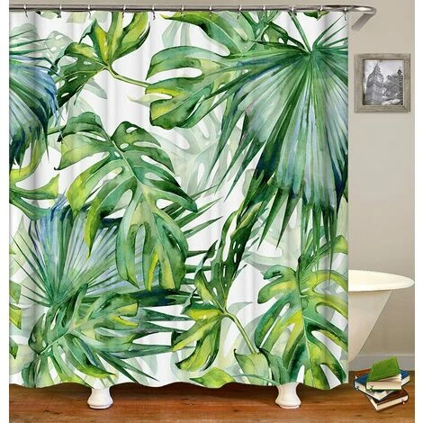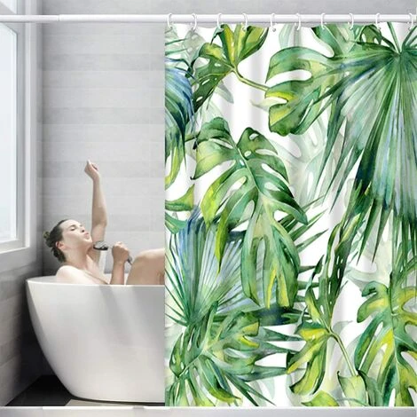 YIDOMDE Rideau De Douche En Polyester Avec Impression Numérique – 5 Tailles – Motif Feuilles – Anti-moisissure – Étanche – Sans Crochet – Pour La Maison Et L’hôtel – Décoration, #3 Blätter, 120*180cm